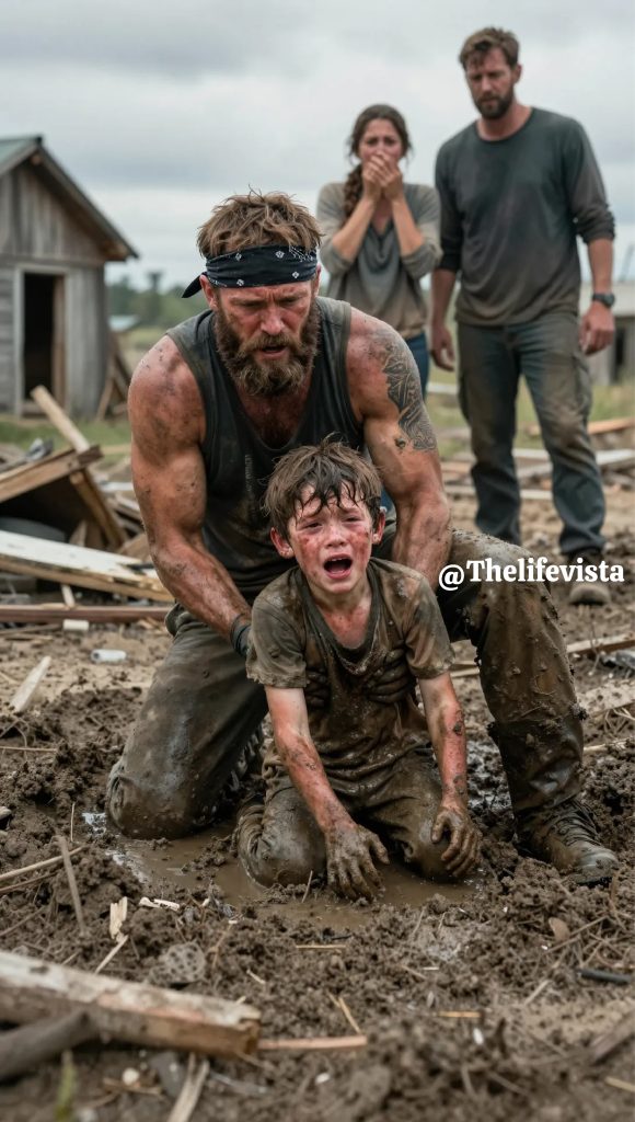 The Morning After the Storm, a Ten-Year-Old Boy Took One Misstep and Began Sinking into the Mud — And When a Bearded Biker Dragged Him Free, He Spoke a Name That Turned His Parents to Stone