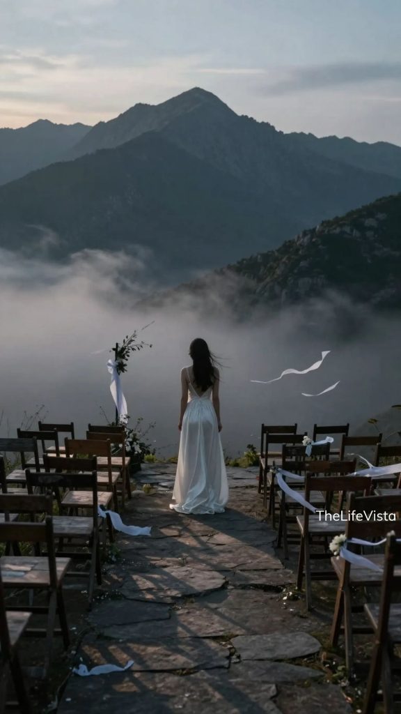 We planned for exactly 56 chairs arranged on a grassy bluff overlooking the valley. We wanted the sharp, clean scent of mountain air. Hundreds of warm string lights draped through the ancient pine branches and handwritten vows that actually meant something. There would be no waste, no performative spectacle, and no manufactured drama.