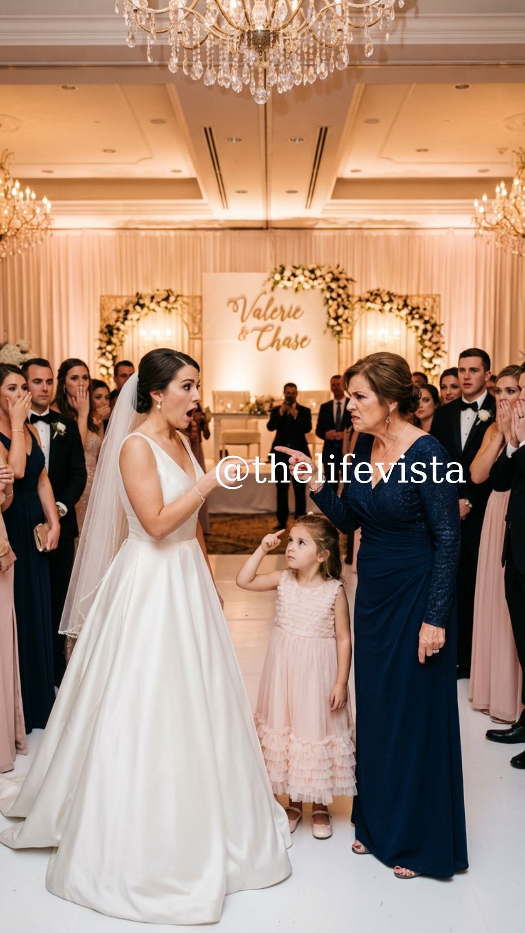 The music faded into background chatter as the wedding reception filled with laughter, clinking glasses, and soft piano covers of love songs. My sister, Lauren, stood radiant in her white designer gown, her new husband, Ethan, glowing beside her. Guests circled with compliments, taking photos and sipping champagne. Everything was perfect—until my four-year-old daughter, Mia, tugged at my hand and pointed toward the bride.