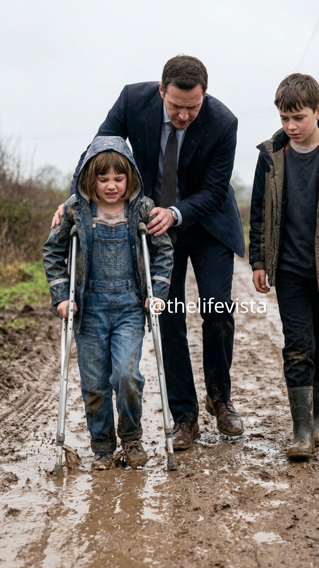 Caleb didn’t lift Leo. He guided him. When Leo slipped, Caleb encouraged him. When his legs shook, Caleb adjusted without taking control, offering support without stealing effort. Five minutes became fifteen. Rain soaked them all. Mud splashed everywhere. For the first time in years, Leo wasn’t a patient. He was a kid in the rain, discovering what his body could try to do.