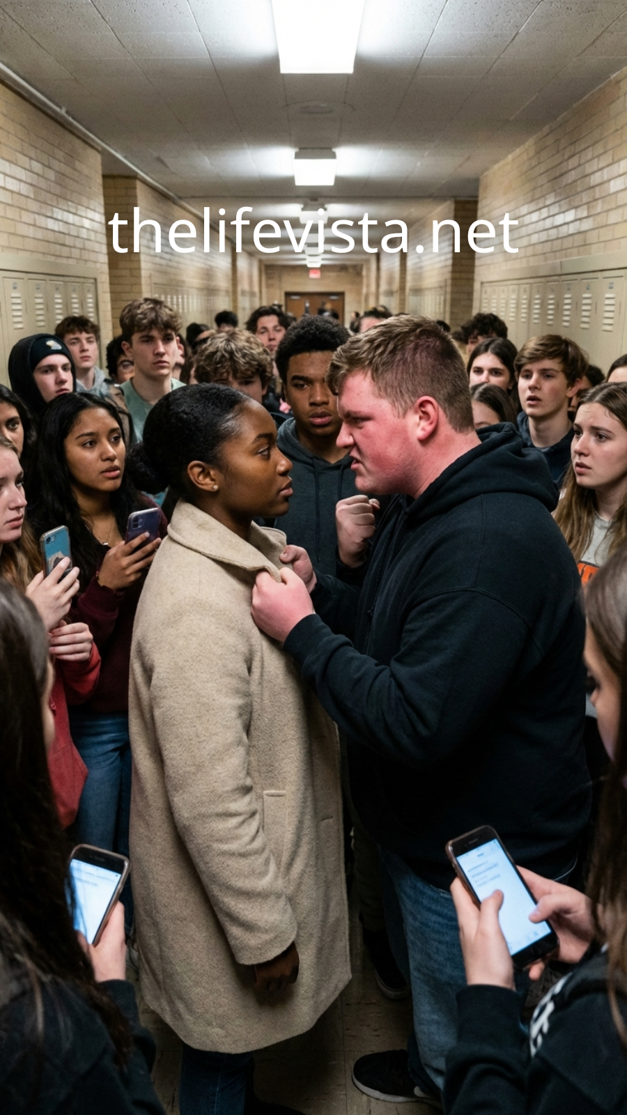 The hallway began to hush. Students slowed, curiosity flickering across their faces. Drama was brewing.