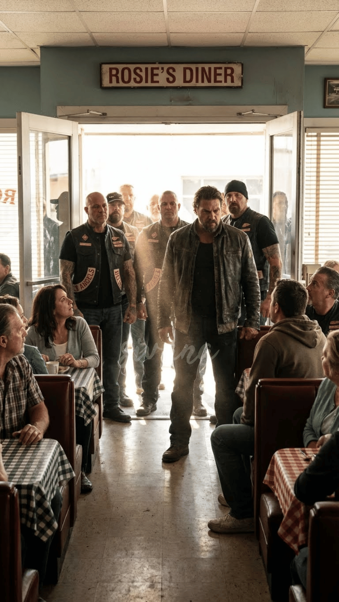 The next morning, I returned to Miller’s Diner. Alone. No jacket, no club colors, just a plain black t-shirt. I found Dad in his usual booth. The whole diner watched me walk over. Betty Collins, the waitress, brought me a coffee instantly, her hand lingering on my arm.