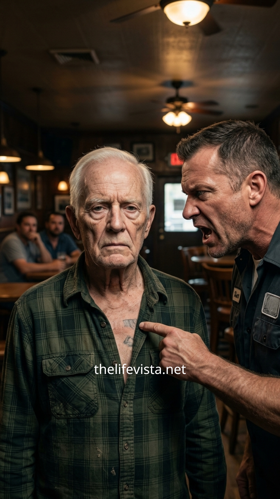 He thought he was taking a cheap shot at nothing more than a relic, right up until the flannel gave way under his grip. Watch closely as the aggressor’s dirt-stained finger digs into the worn Trident on the veteran’s shoulder, a small detail that changes everything. In an instant, the entire atmosphere of the dive bar shifts, the balance of power tilting completely as the veteran doesn’t flinch, doesn’t step back, but instead stands firm and answers with a single, measured word. It raises a question that lingers in the air long after the moment passes: does a man lose his value the moment he hangs up his gear for good? The truth they didn’t want seen, the part they tried to keep hidden, is waiting in the pinned comment.