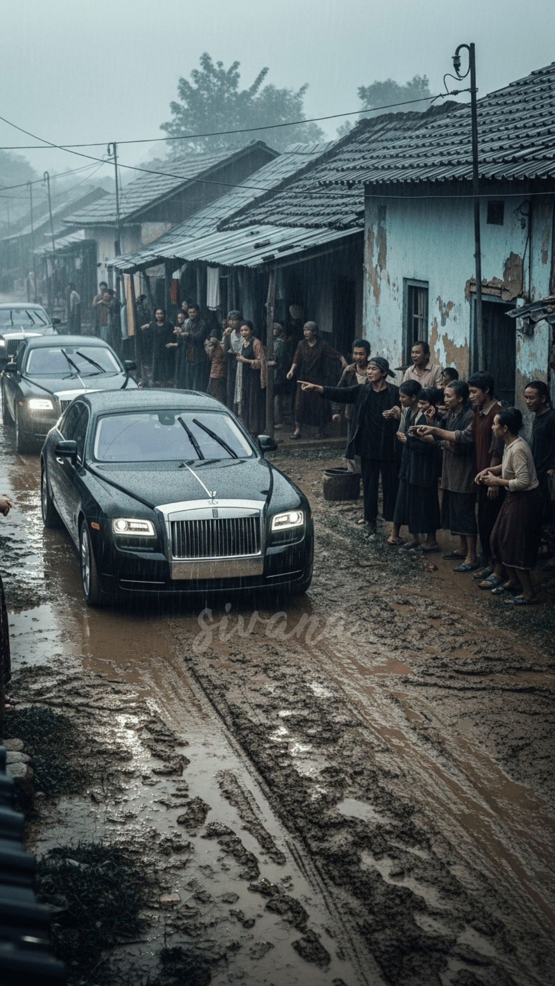 One rainy morning, as I mended Noah’s uniform, a low rumble echoed through the street. Outside, the neighbors gathered as three black cars rolled slowly through the mud toward our home.
