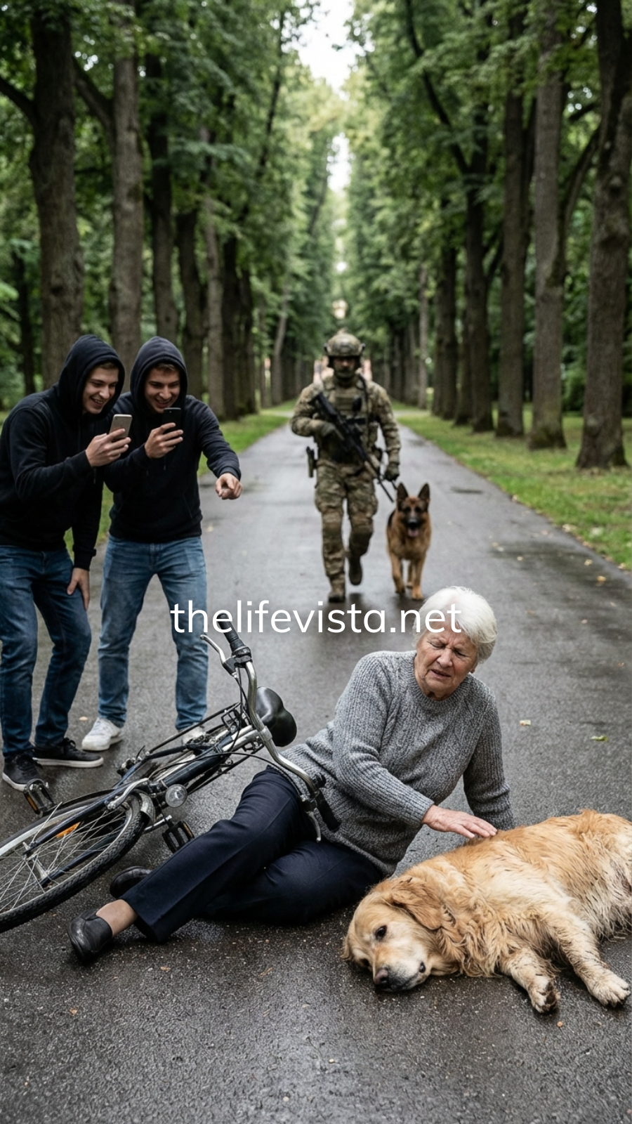 The boy holding the phone scoffed, but Atlas’s eyes locked onto him like a warning wrapped in fur.