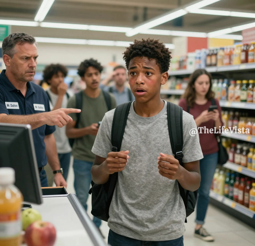 Mr. Dalton lowered his head and offered a strained apology, his earlier authority replaced with visible embarrassment. Jordan adjusted the strap of his backpack and picked up the receipt, smoothing it out before placing it securely inside. He explained quietly that he had come to buy notebooks and supplies for his younger sister, who was starting school the following week. His words were simple, yet they carried the weight of everything he had just endured. No one interrupted him, and no one dared to laugh or whisper again.