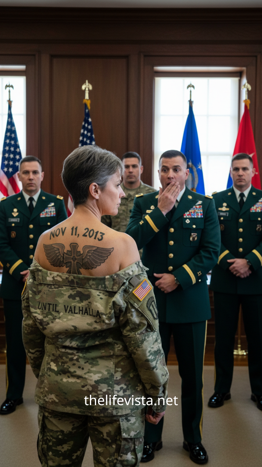 A combat medic cross, wings carved around it not like angelic fantasy but fierce guardianship. Beneath the wings, burned into her skin, were numbers burned into military memory: