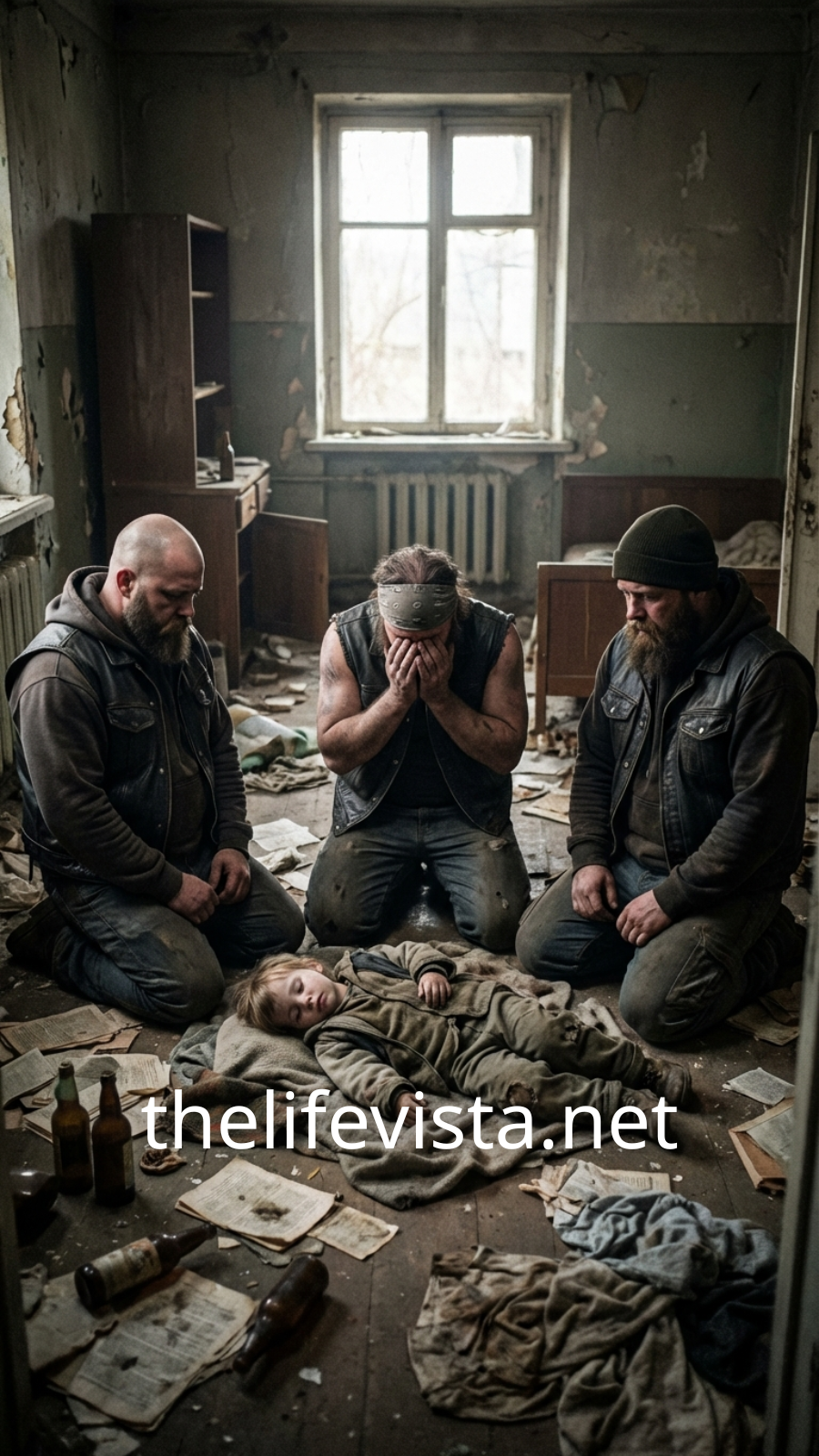 Inside, the air was stale and sour, heavy with neglect. Trash littered the floor. And there—against the far wall—sat a boy.