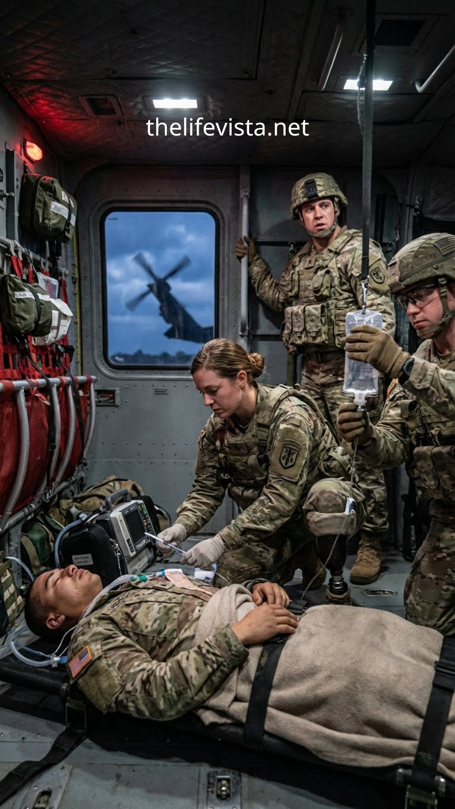 The Black Hawk lifted off, slicing through the storm clouds. Inside, the cargo bay had been converted into a makeshift surgical area—far from sterile, light poor, team limited. The turbulence rocked the helicopter like a child’s toy. Madison took a deep breath and began organizing her kit.