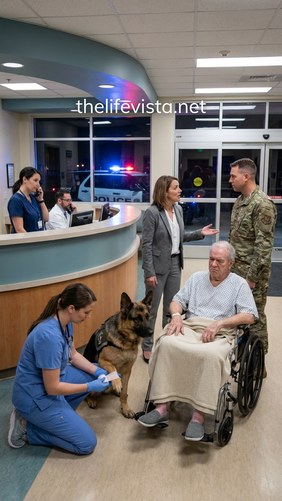 Brooke didn’t wait for permission. She guided Evan and Axel toward the room as two corpsman-looking men opened space—polite, but unmistakably firm. Patients stared. Phones appeared. The ER’s usual chaos slowed, captivated by the absurdity: a civilian hospital bending to military urgency for a dog.