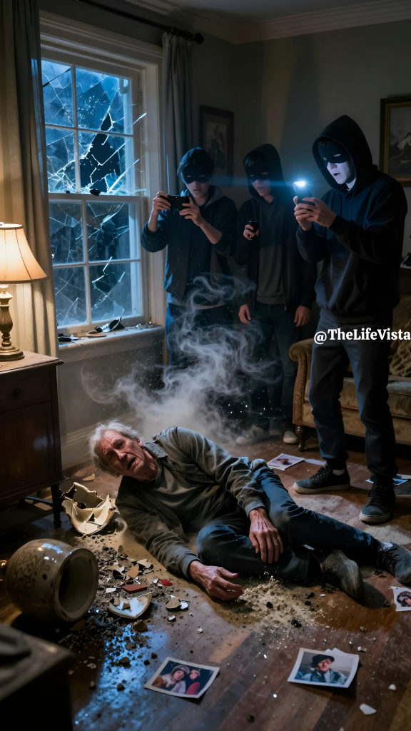 “Look at this place,” the one filming said, speaking not to me but to whatever followers he imagined on the other side of the camera. “Old guy lives alone. This is depressing.” He moved around the kitchen like he was hosting a tour, narrating my life with the cruelty of somebody who believed other people’s pain existed for entertainment. The heavy one opened drawers and cabinets in sweeping, theatrical motions, scattering silverware and unpaid bills and rubber bands as if the mess itself improved the production. The tall one kept swinging the crowbar lightly against his thigh, smiling every time I flinched. Their laughter kept moving through the room in bursts, and I have learned that laughter is often the ugliest sound when fear is already doing all the talking.