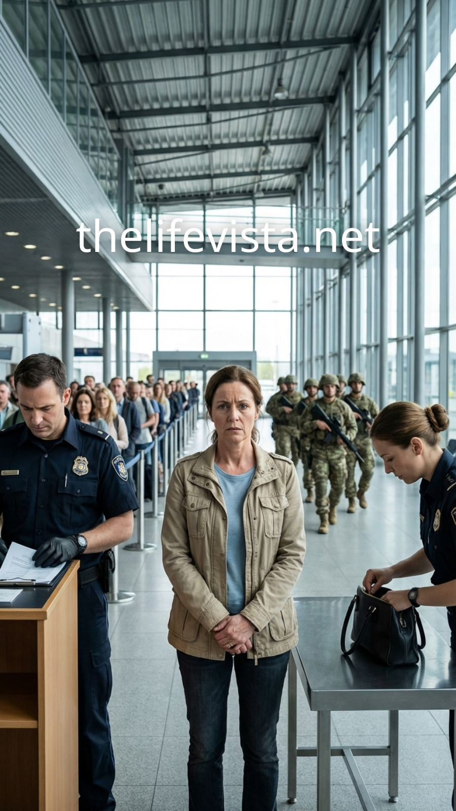Still, the woman remained unmoved. Her gray jumpsuit seemed to absorb the hub’s fluorescent light, and her posture—square shoulders, level chin, grounded weight—belied every assumption about who she was.