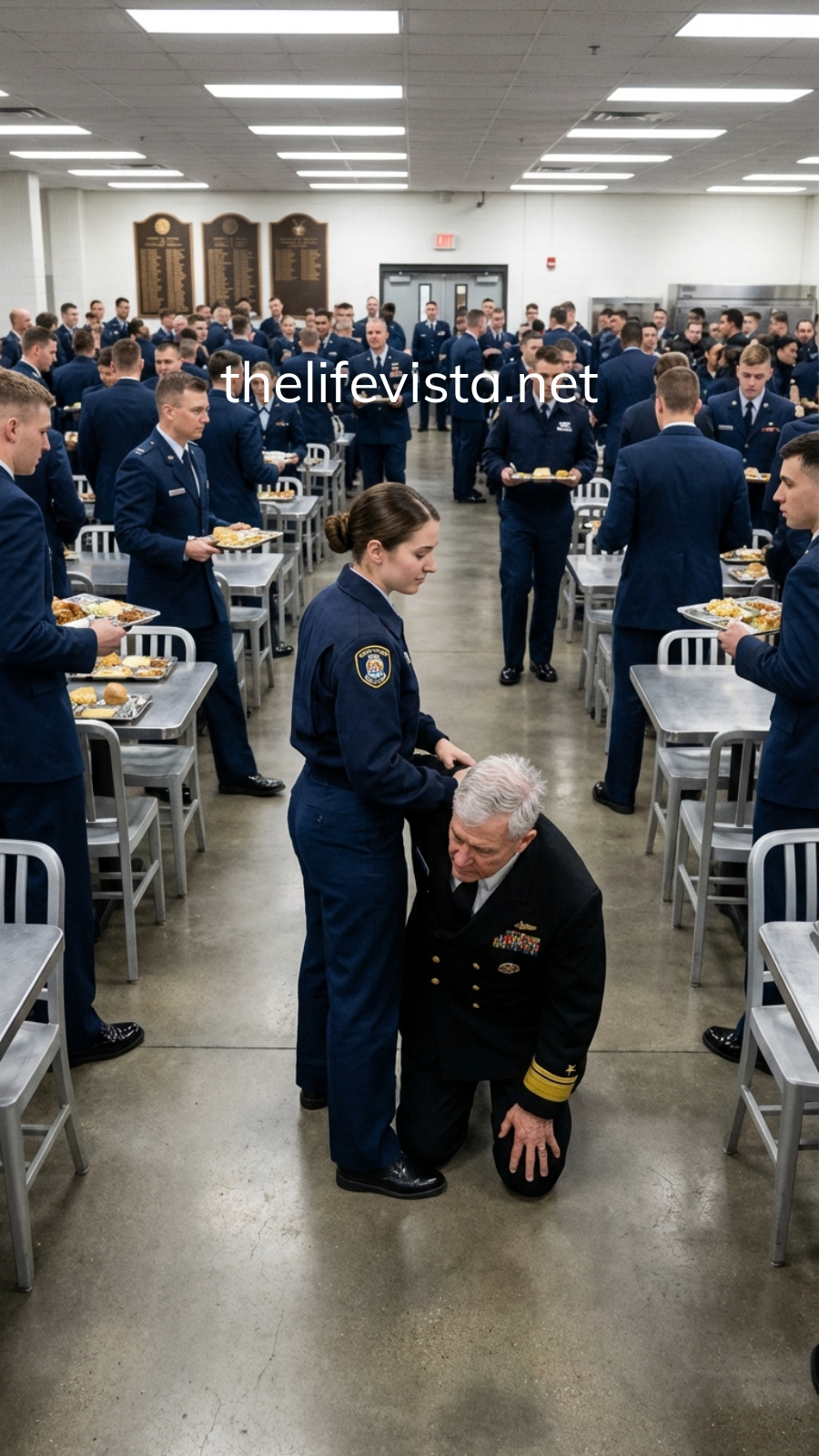 On the far wall, the dining hall’s memorial plaques—names of sailors lost at sea—seemed to watch the scene in silence. An instructor shouted for everyone to look away, but the damage was already carved into memory and into the security feed. A petty officer at the comm desk swallowed hard, then hit the incident-preserve button that automatically locked every camera file against deletion.