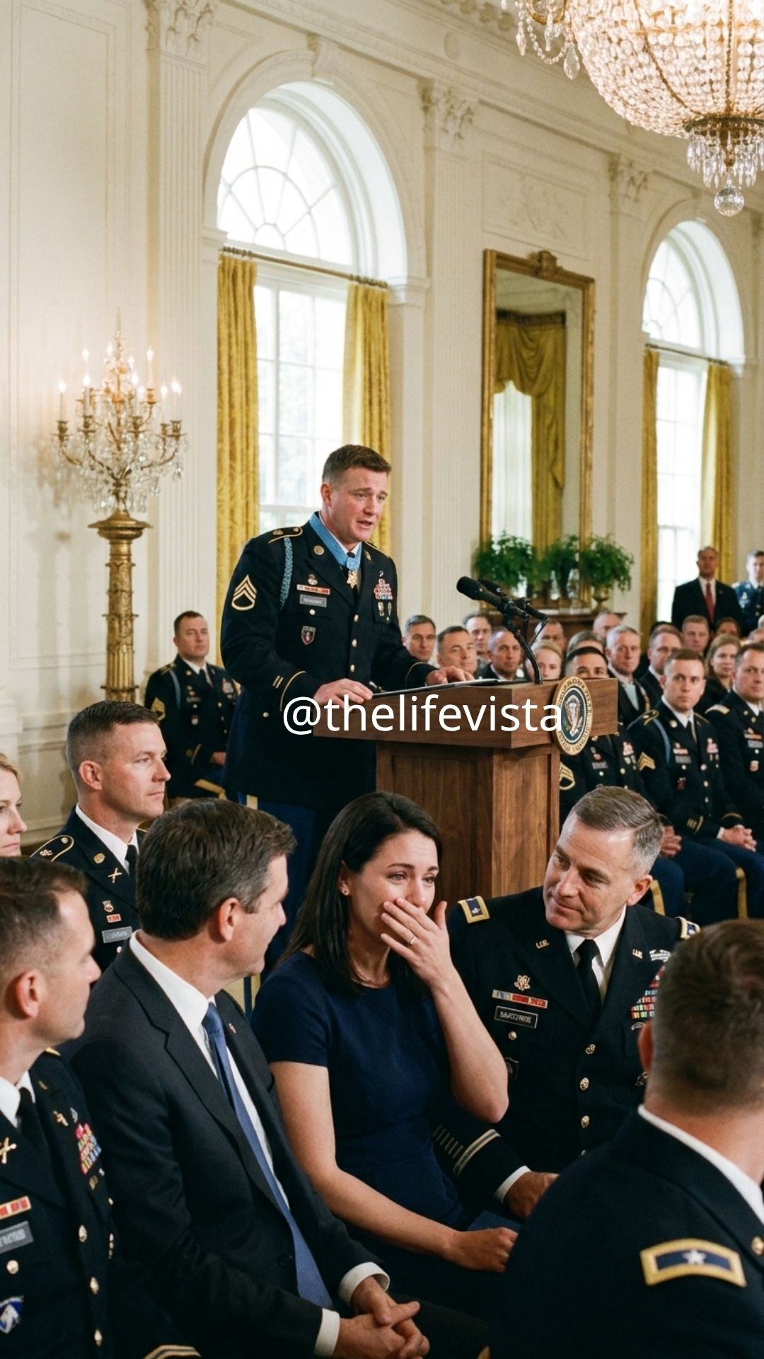 The East Room was already filled when Ava took her seat. Uniforms. Medals. Faces that carried stories she couldn’t begin to guess at. The air smelled faintly of polished wood and fresh flowers, something formal and almost ceremonial in a way that made you instinctively lower your voice.