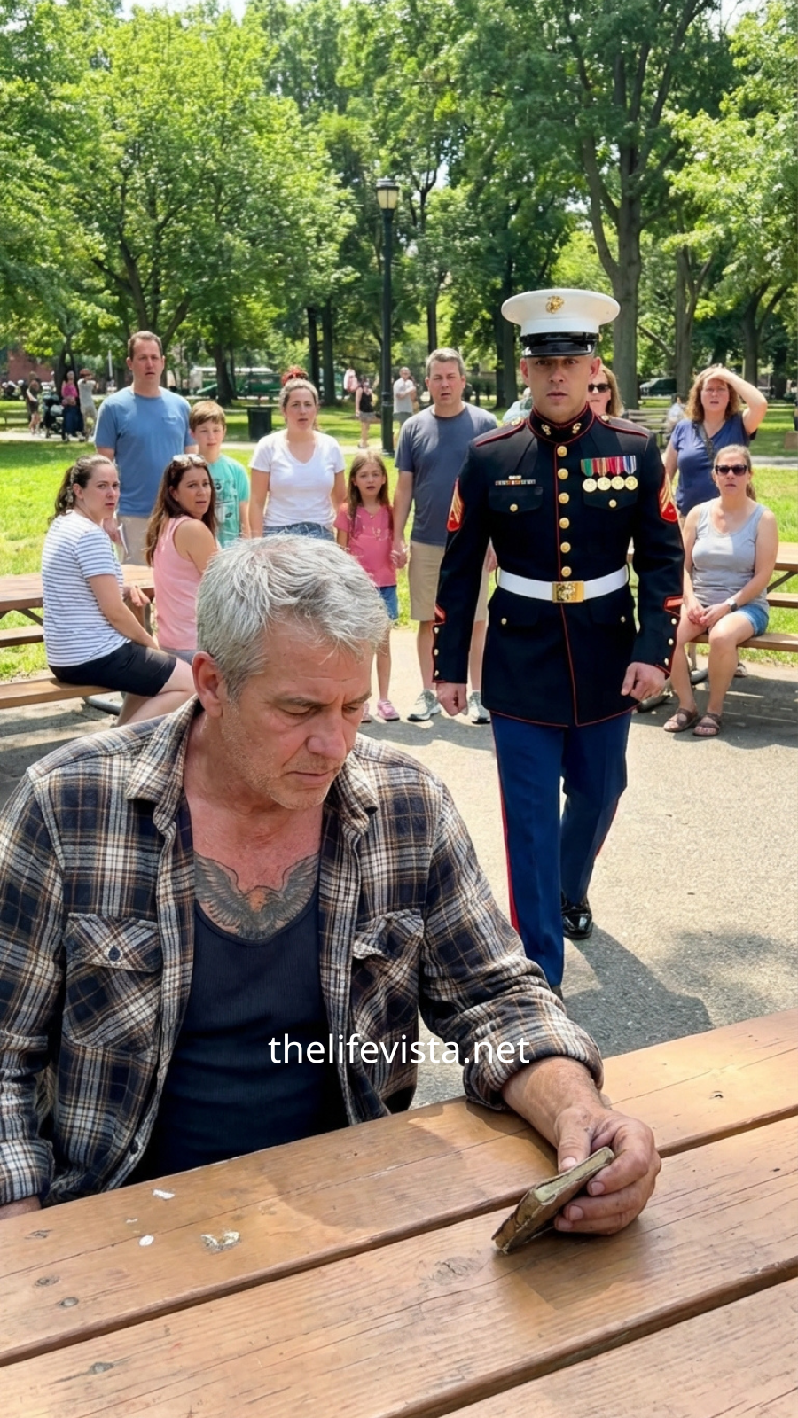 The bikers stood frozen, their mouths agape, as the numbers swelled to two, then three hundred. Nearly 500 Marines stood in formation, their eyes fixed on one spot: the small picnic table where the old man sat. The park fell silent. Spike’s bravado melted away.