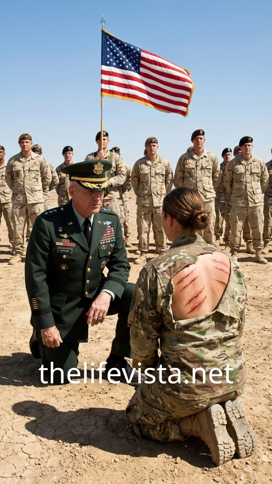 She stood alone in the dust—thin, sunburned, and exhausted. The uniform hanging on her body was unmistakably military issue… but faded, patched at the elbows, and missing every visible badge of rank or identity. No name tag. No unit patch. No ribbons. Just an empty chest.