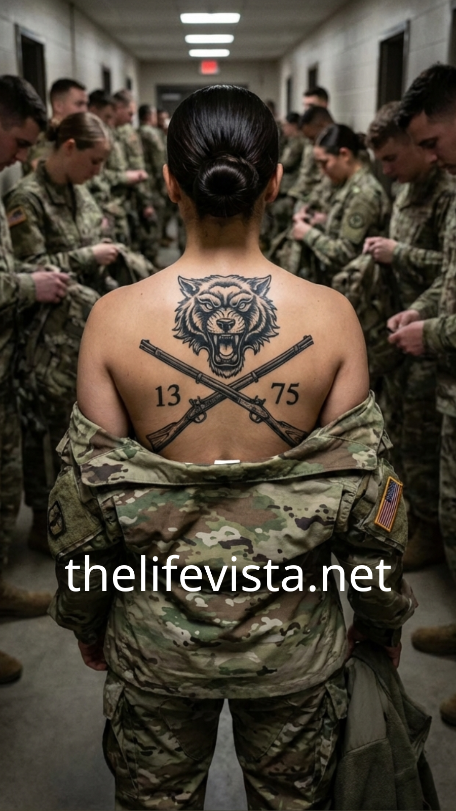 As she pulled her shirt over her head, the back of her shoulders caught the overhead light—briefly, cleanly, long enough for one of the clerks to stiffen. He was a former infantry sergeant now trapped behind a desk, the kind of man who still carried old images in his mind like shrapnel.