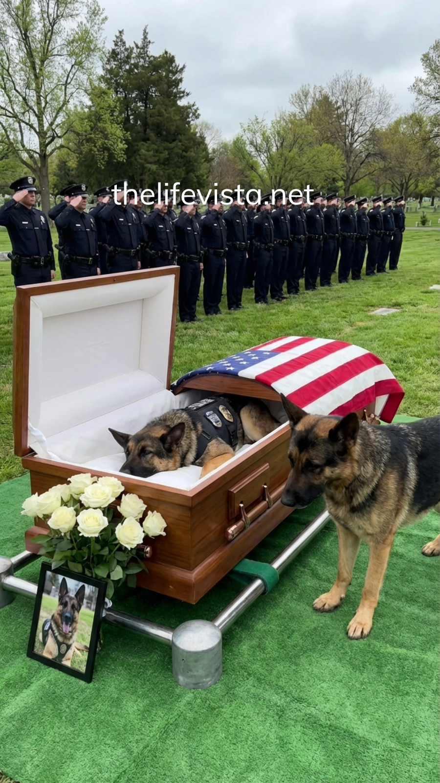 Outside, the last of the patrol cars were clearing the streets. The flashing lights had faded, but the image stayed behind—honor given to a partner who had earned every second of it.