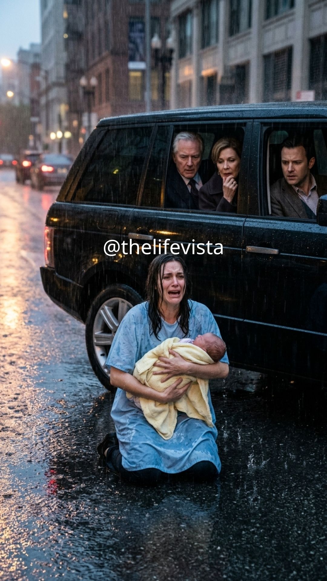 Two days after giving birth, I waited outside the hospital in the rain, bleeding and holding my newborn daughter against my chest, while the automatic doors slid open and closed behind me as if even the building itself was indifferent to whether I stayed or left. Every movement sent a sharp reminder through my body that I had barely survived childbirth, yet there I stood on the curb in a thin gown, my stitches pulling with every breath.