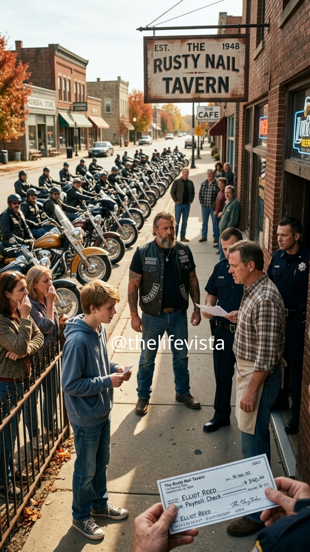 Evan stood on the sidewalk long after the motorcycles disappeared, the check still clutched in his hand, the weight of it more than just paper. The Missing Paycheck Confrontation would be talked about in Redfield for years, not because of the spectacle of twenty bikers, but because a sixteen-year-old had dared to ask for what he earned — and this time, the town had been forced to listen. And somewhere inside the Alder Brick Tavern, a man who had always relied on silence to protect him learned that silence can change sides when enough people decide they’re done pretending not to notice.