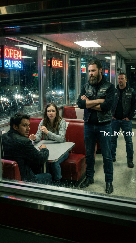 Two broad-shouldered men stepped inside, their leather vests catching the dim light. The air shifted—not loudly, not dramatically, but with a weight she could feel pressing against her chest. Something in her instincts stirred.