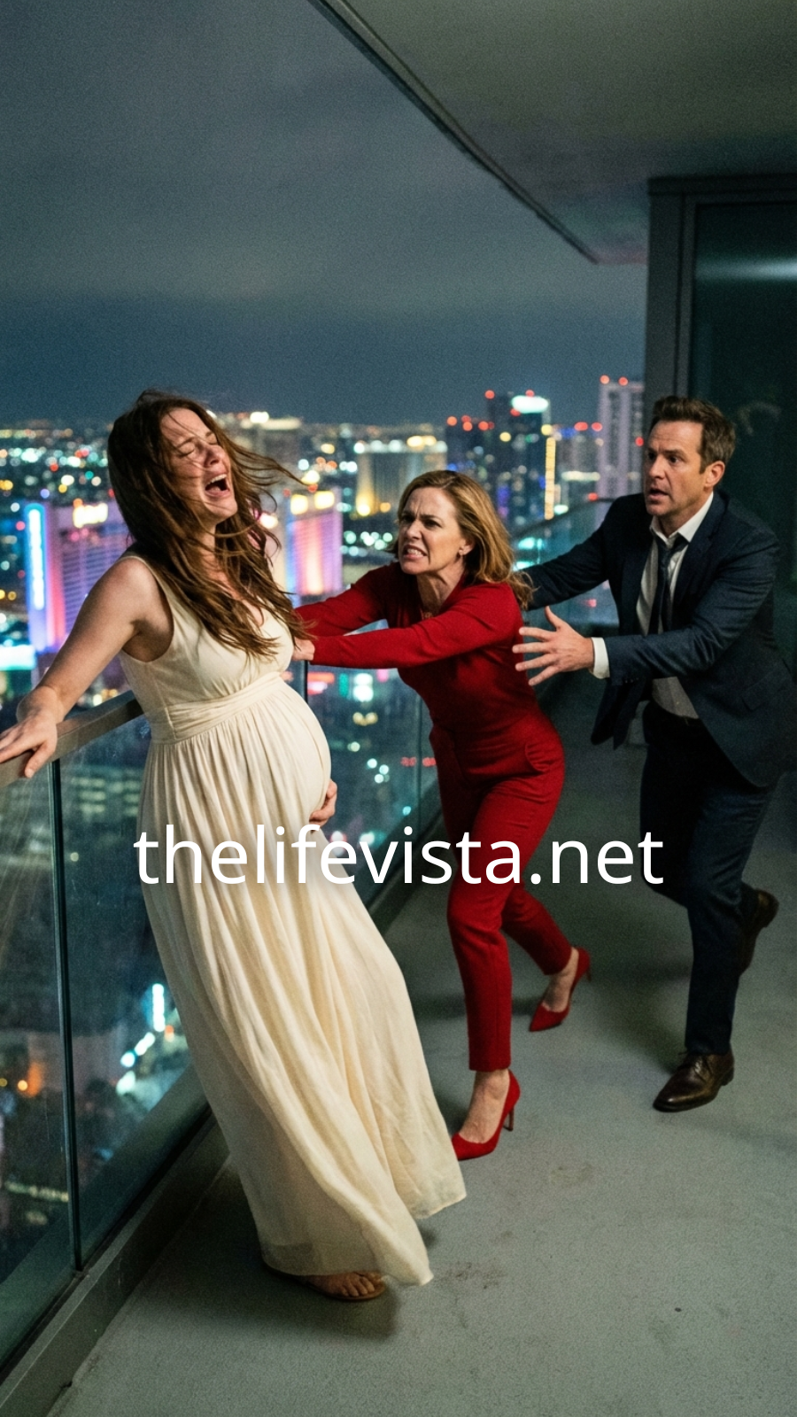 Before I could step back, she grabbed my wrist with a strength born from delusion and dragged me toward the low stone railing overlooking the street ten feet below.