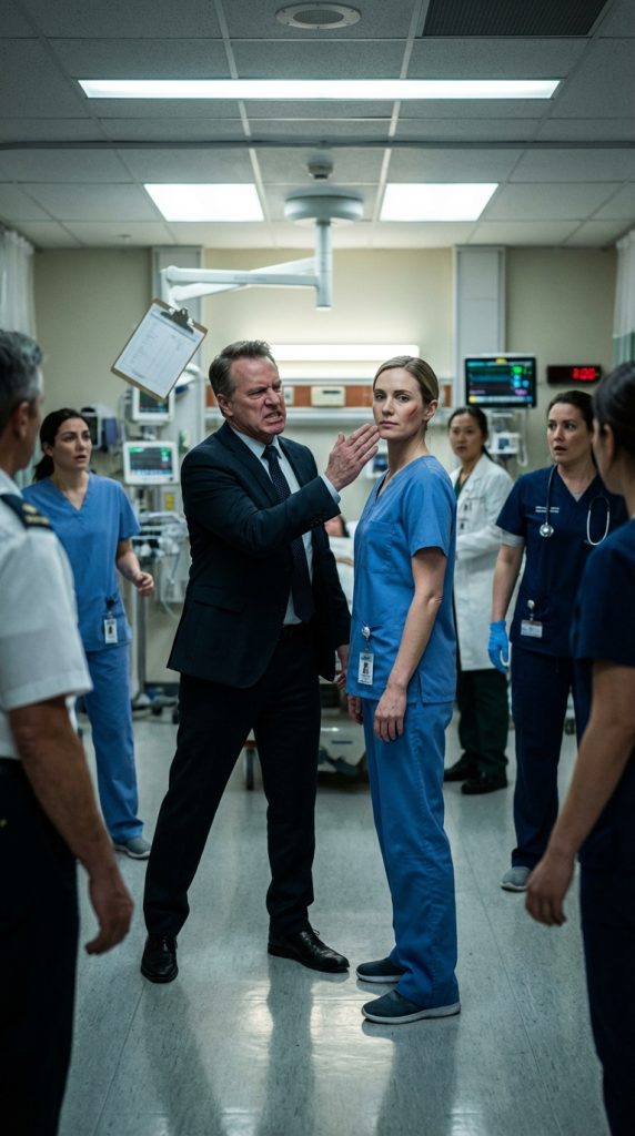 A resident dropped a chart. A paramedic cursed under his breath. Nora’s head turned slightly from the force, but she didn’t stumble. She didn’t shout. She didn’t cry. Slowly, she straightened, met Rathborne’s gaze—and said nothing.