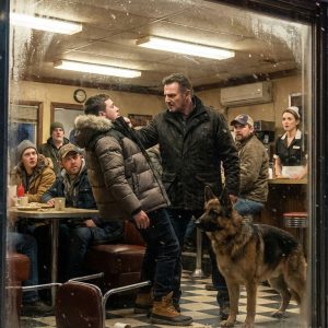 One of Nolan’s men reached for a weapon. Gabriel came out of cover like a strike, driving him into the steel wall of the loading bay before the gun cleared leather. At the same instant, Viper launched toward a second armed man sprinting for the truck cab. The Malinois hit low and hard, clamping onto the shooter’s forearm and dragging him sideways into the snow. A shot went off wild into the air.