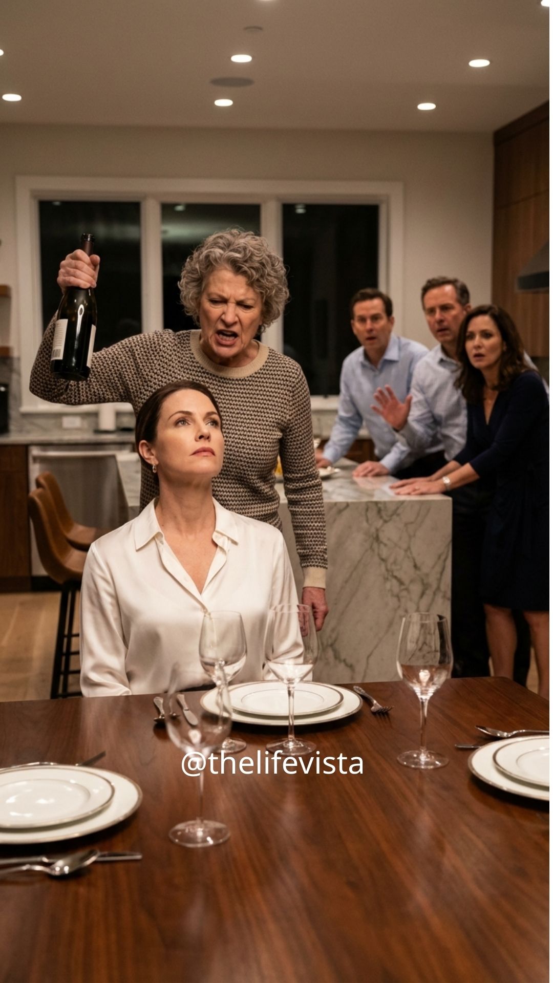 There was no initial pain—just a stunning force, a pressure like the world had been reduced to the point where glass met bone. Then I heard the sound, delayed: the deep, wet crack of glass shattering, the splatter of liquid, the sharp tinkle of shards bouncing across the tile.