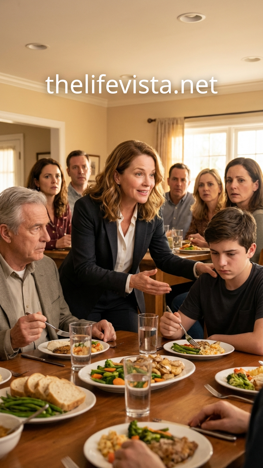 My son Ethan, sixteen and already carrying more pressure than he should, slowly lowered his head. He focused on his plate, pushing mashed potatoes around with his fork as if they required intense concentration. But I saw it—the tightening of his jaw, the effort to swallow something heavier than food. It was the look of a boy learning too early how casually cruelty can be disguised as humor.