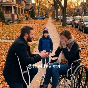 She knelt beside his table on the sidewalk, cradling her baby gently in her arms. “Please… I don’t want your money. Just a moment of your time.” The...