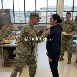 “That seat isn’t for you,” the sergeant said as he tried to force the quiet woman out of the military cafeteria, convinced she didn’t belong there. She didn’t argue or raise her voice—she simply looked at him and asked, “Do you know who you’re talking to?” and seconds later, the entire room fell silent as the truth became clear.