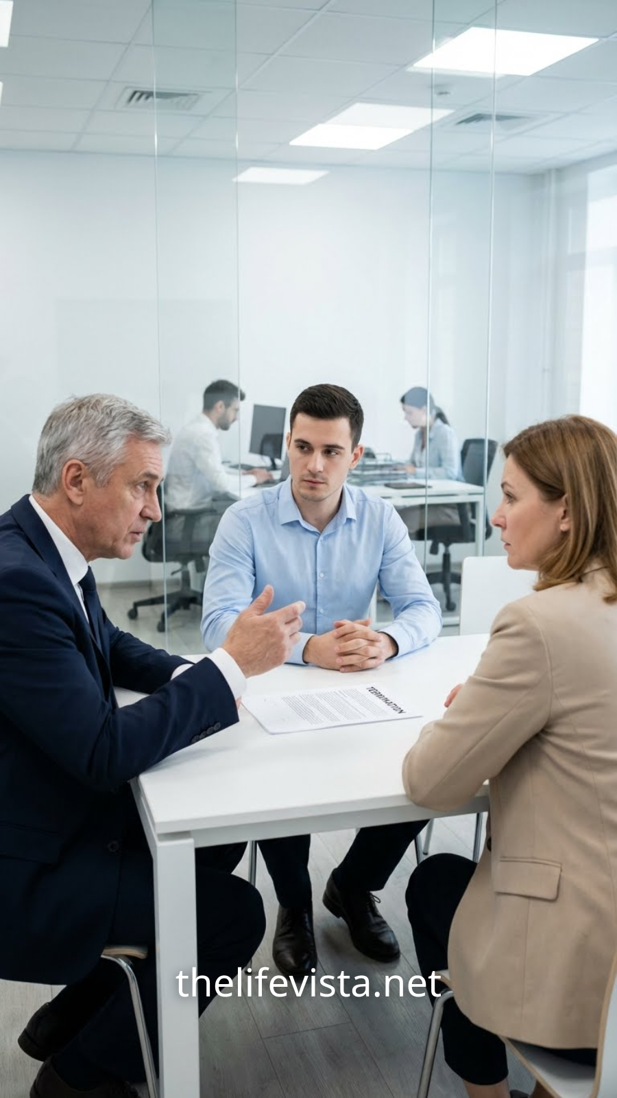 “You’re being terminated,” Edison continued, sliding a letter across the table. “Effective immediately. Security will escort you to retrieve your belongings.”