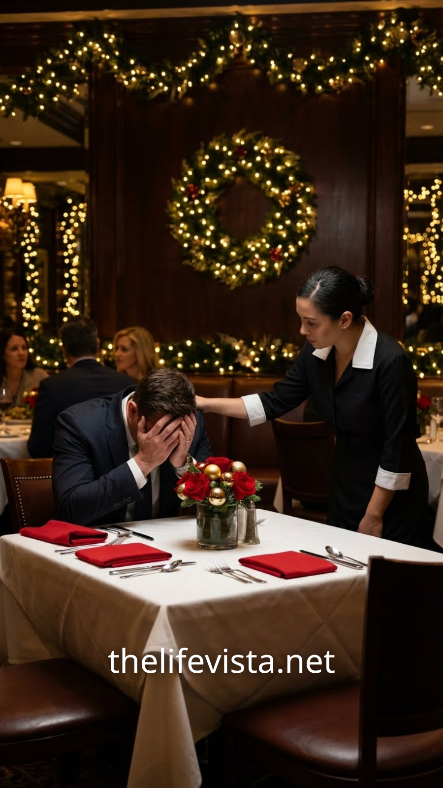 That Christmas Eve, the restaurant was full—families laughing, couples intertwined, businessmen behaving as if generosity were something you could order by the bottle.