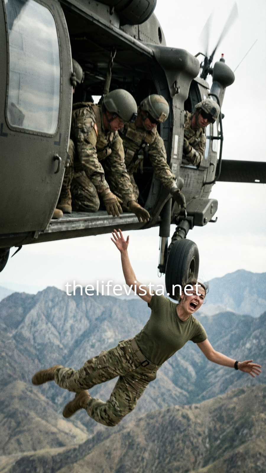 The knife moved faster than thought, slicing through her harness straps with surgical precision. Before she could react, hands seized her arms, lifting her vest and shoving in one coordinated motion. The Blackhawk’s open door yawned beside her, and Alex Morgan fell into the void.