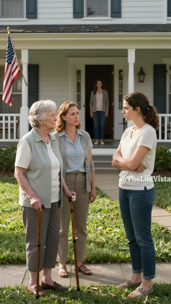 I walked down the steps, found the number for a taxi, and as I waited at the curb with my cane balanced between my knees, I watched the porch light of my home stay steady, as if nothing had changed, and I let myself feel one sharp, contained ache, not for the house itself but for the fact that my son had decided I was something he could move, store, and manage, as though motherhood ended at the moment a child grew tall enough to believe he owned the world.