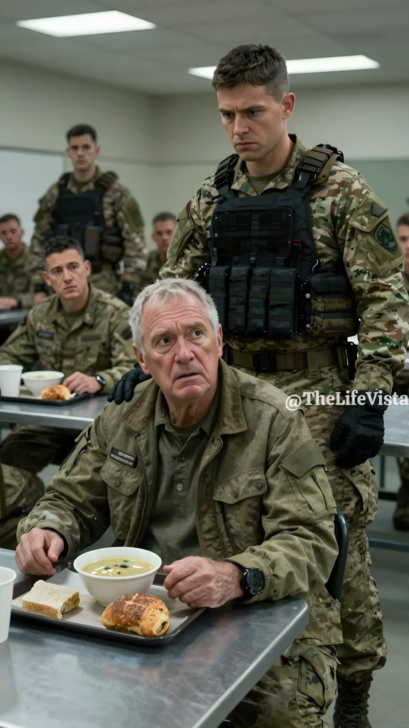 Nearby conversations faltered, utensils paused midair, and the mess hall did not merely quiet, it braced, as if instinct itself recognized something important unfolding.