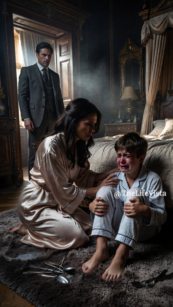 She waited until the house settled, until the clock struck 2:30, until courage replaced hesitation. She unlocked the bedroom door with the master key and found Lucas curled like a frightened animal, his shoulders trembling as he fought back another wave of tears.