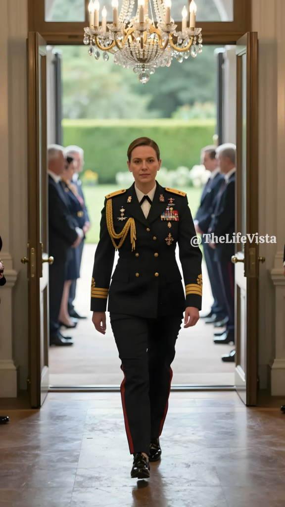 A cluster of uniformed officers moved forward near the entrance, crisp and composed, the kind of presence that rearranges a room without needing to say much. At their front was a man I recognized immediately, though time had reshaped him from the trainee I once knew into an officer who carried authority cleanly. Lieutenant Colonel Marcus Vale, one of my former protégés, stopped a few feet in front of me, hesitated for a fraction of a heartbeat as his eyes flicked over my face, then he clicked his heels together and snapped a salute with precision that made the entire space feel suddenly smaller and sharper. His voice carried across the room in a formal tone that didn’t care whether the guests understood it. “Colonel Hartwell,” he said, “is that you, ma’am?” The question wasn’t doubt so much as protocol, the kind of confirmation you give when the moment deserves exactness, and when I answered with a simple nod, he said, louder now, “It’s an honor,” then the officers behind him saluted as well, not because they were told to perform but because they knew who I was, and now the room did too.