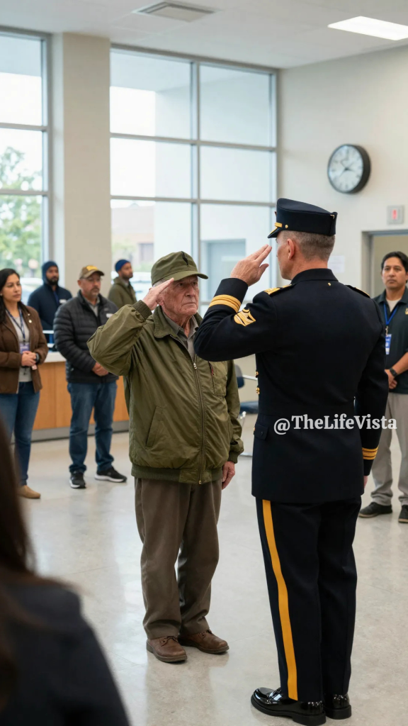 Veterans inside the building stood, and then civilians rose too, not because anyone ordered them, but because dignity demanded it, and in that quiet collective motion the room tried to correct itself in the only way it knew how. Elias returned the gesture slowly, not as someone craving praise, but as someone closing a circle that never should have been broken, and when the transaction was finally processed, it happened without fanfare, the way it should have from the beginning, with respect, efficiency, and silence. Elias withdrew the money, nodded once, and did not ask for apologies that would have been more about relieving other people’s guilt than honoring his reality, and as he turned to leave, General Cross pressed something into his hand, a small piece of metal engraved with three words—Beyond Recorded Honor—and Elias closed his eyes for a brief moment, not in pride, but in release, as if a burden carried quietly for too long had loosened just enough to let him breathe.