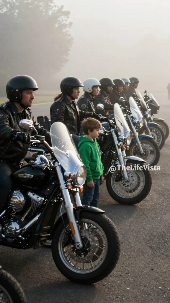 They wore leather vests marked with patches, jackets draped over vinyl seats like resting animals, boots scarred by miles and choices, and though Noah had been warned by teachers, neighbors, and the man waiting to find him that these were the sort of men who ruined towns, he knew something far more important, something he had learned through locked doors, raised voices, and promises whispered in the dark.