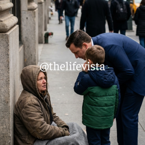 Her clothes were clean but thin, chosen not for warmth but to avoid drawing attention, and she held a paper cup in both hands as though it were something easily taken away. What stood out most were her eyes, which moved from face to face with practiced caution, not hopeful or pleading, but assessing, measuring risk, and preparing for rejection before it arrived.
