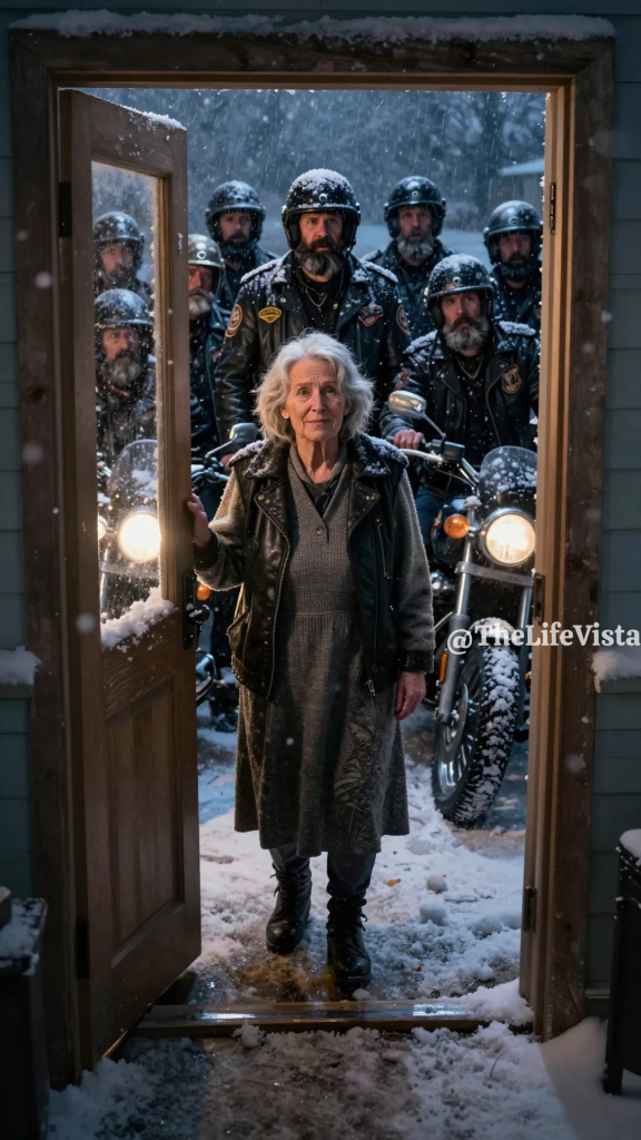 The bikes rolled to a stop in her driveway, and for a moment the only sound was the wind, furious and hungry. Then boots crunched on snow, heavy steps on her walkway, and her doorbell rang once, slow and deliberate, not frantic like someone begging, but steady like someone who expected it to be answered. Evelyn’s hand hovered near the lock, her pulse thudding, and she felt that old instinct rise—the one that told her to protect what little she still had.