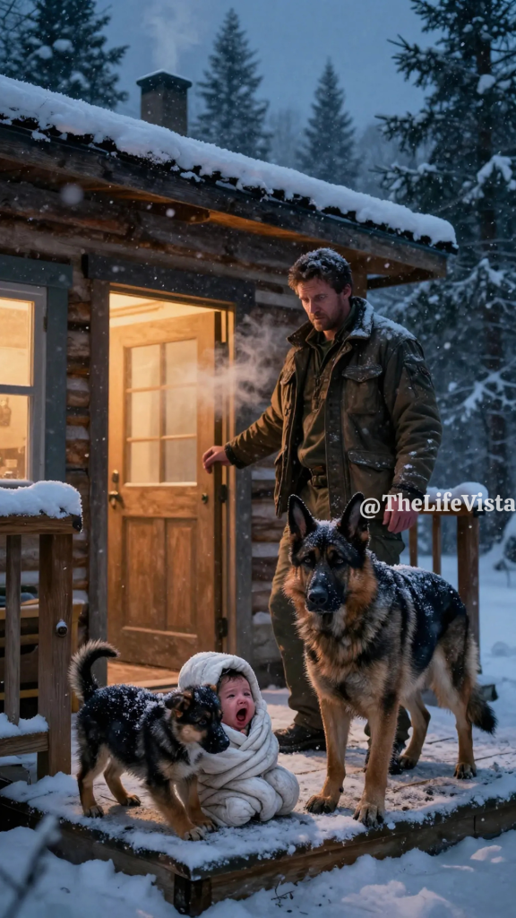 He listened until the forest fully reclaimed its quiet. The shepherd settled but did not relax, and the puppy hovered near her shoulder as if trying to understand. Nathan turned to the baby’s bed near the stove and felt the weight of his decision become absolute. Those men had transformed uncertainty into pursuit. The cabin, once refuge, had become a location someone else would revisit.