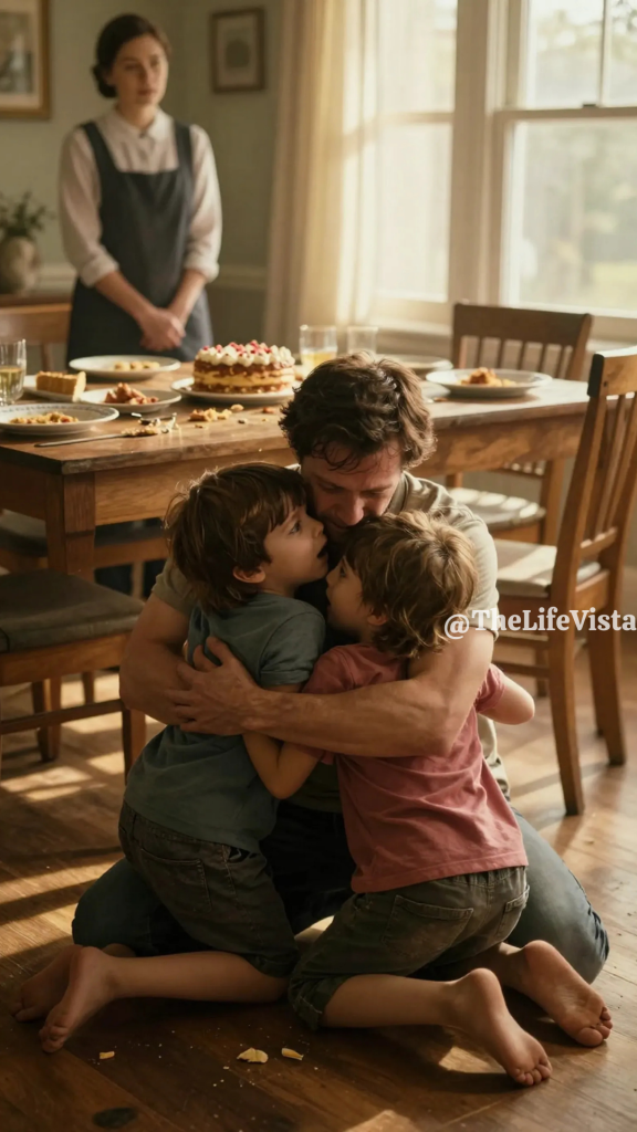 When Declan looked up, Serena stood near the table, tense and uncertain, as if she expected reprimand. He realized then how little respect he had shown the person who had been keeping his children emotionally afloat while he chased control. He motioned for her to sit, and when she hesitated, he repeated the invitation with a steadiness he didn’t fully feel. Declan sat back down with his children, accepted a slice of cake, and asked them what they had done, who cracked the eggs, who insisted on extra fruit. He listened to their answers without checking his phone, because something inside him finally recognized that this was the meeting he had been missing.