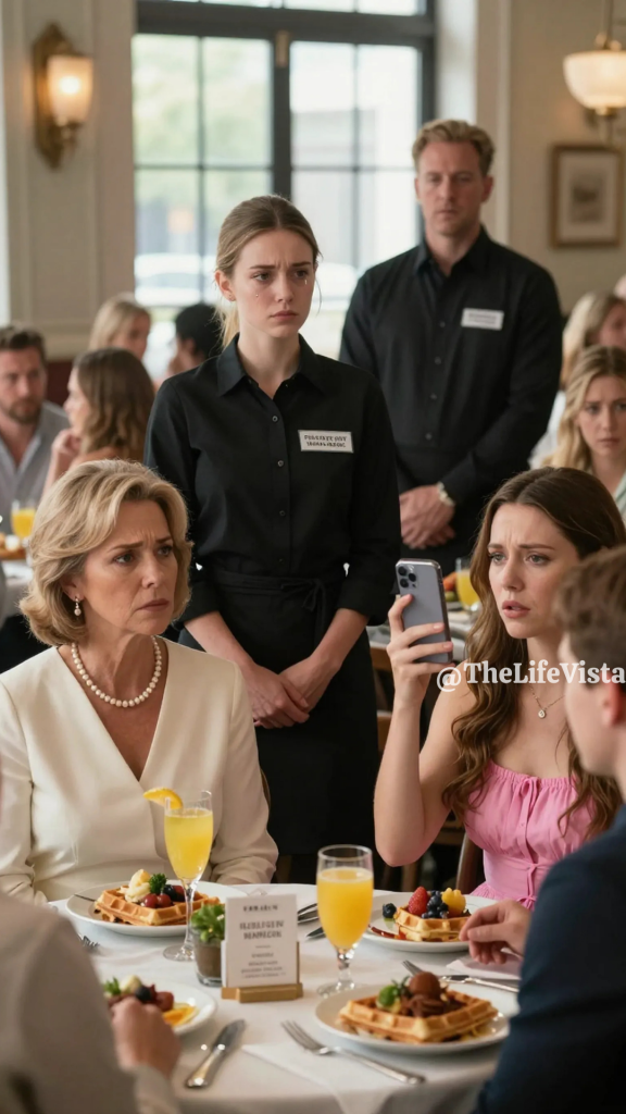 Marilyn sputtered that it was a family matter, and Mr. Carver replied that the moment she raised her voice and humiliated a worker, she made it the restaurant’s matter. Blaire tried to laugh it off into her phone, but her voice caught when she realized the room was not on her side. A nearby table had stopped eating entirely, and an older couple stared at Marilyn with open disapproval. Mr. Carver then did something that made Marilyn’s confidence wobble, and his tone became crisp with authority. He asked Marilyn and Blaire to lower their voices immediately or leave, and he made it clear that their brunch was not worth a staff member’s dignity.