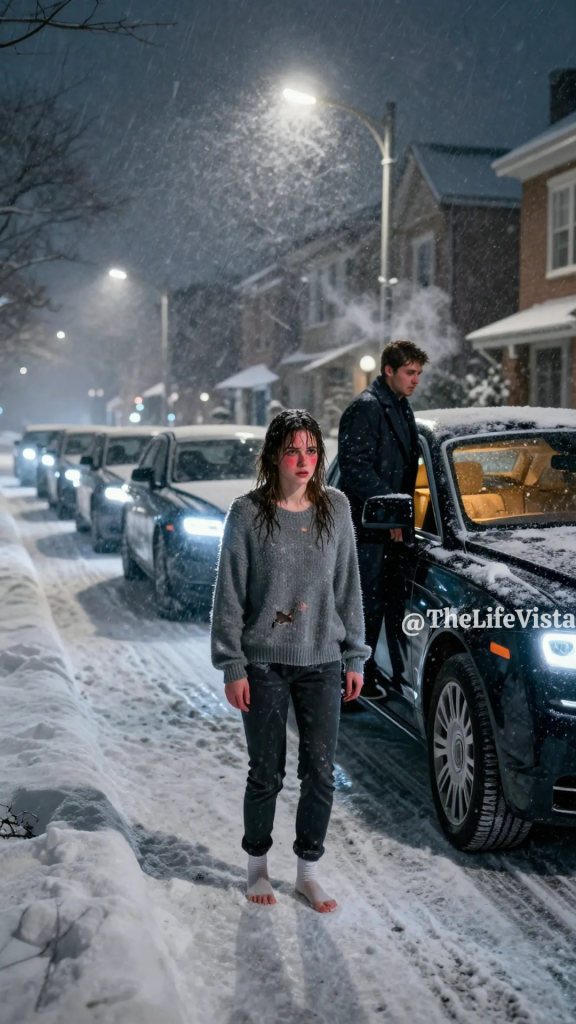 That was when light swept across the street and struck the snowbanks in a bright, clean beam. My heart jerked in my chest, and panic surged so fast it made me dizzy. For a split second I thought it was Brent coming to finish what he started, coming back not to bring me inside but to enjoy watching me beg. I turned toward the headlights with my shoulders raised, bracing for laughter, bracing for another shove. Instead, a sleek black car slowed to the curb, silent and controlled, as if it had been instructed not to startle me.