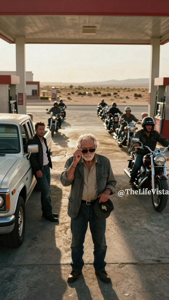 From beyond the rise came the unmistakable silhouettes of motorcycles moving as one, their shapes merging into a dark mass that swallowed the shimmer of heat and replaced it with shadow and steel. The sound did not rush but advanced with patience, as though it knew space would be made for it. Evan backed away from the pump without realizing it, confidence thinning as he muttered that this was not normal. Walter felt his chest tighten with recognition rather than fear, because some sounds never truly leave you.