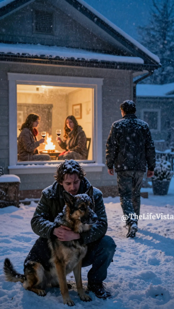 My name is Daniel Moreno, and the night I saw Rex shaking outside the back door while the fireplace roared inside and crystal glasses chimed with laughter was the night something inside me settled with absolute clarity. The house glowed with warmth, golden light spilling across the snow, creating a picture so perfect it almost felt staged. Yet just beyond the glass, pressed against it as if hoping the barrier might soften, Rex trembled with cold seeping into his aging bones. In that instant, I understood that some doors close not because of rage, but because dignity refuses to beg. I did not raise my voice when it happened, and perhaps that quiet was what made it final.