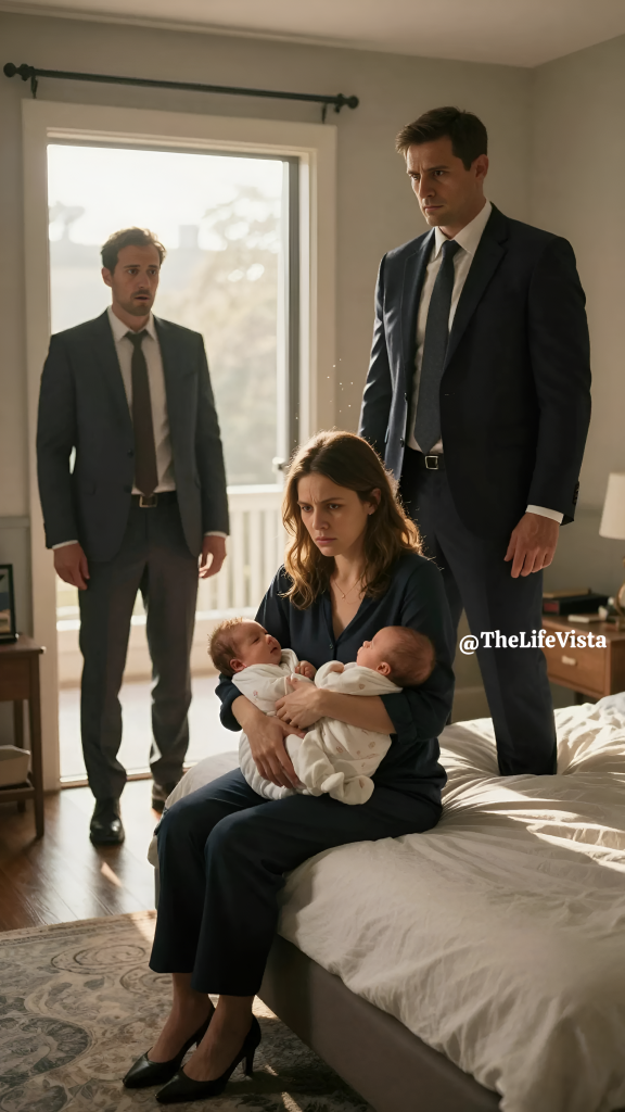 Her husband, Daniel Reeves, entered the bedroom without knocking, the door striking the wall with enough force to startle one of the babies. Sophia instinctively adjusted her hold and whispered reassurance, assuming he had come to help or at least check on her. Instead, he stopped a few feet away and crossed his arms, his posture stiff and deliberate. His expression held no urgency, no softness, only the detached calm of someone who had already made a decision. The air shifted, though no one else in the house seemed to notice. Sophia felt exposed, vulnerable in a way that went beyond physical recovery.